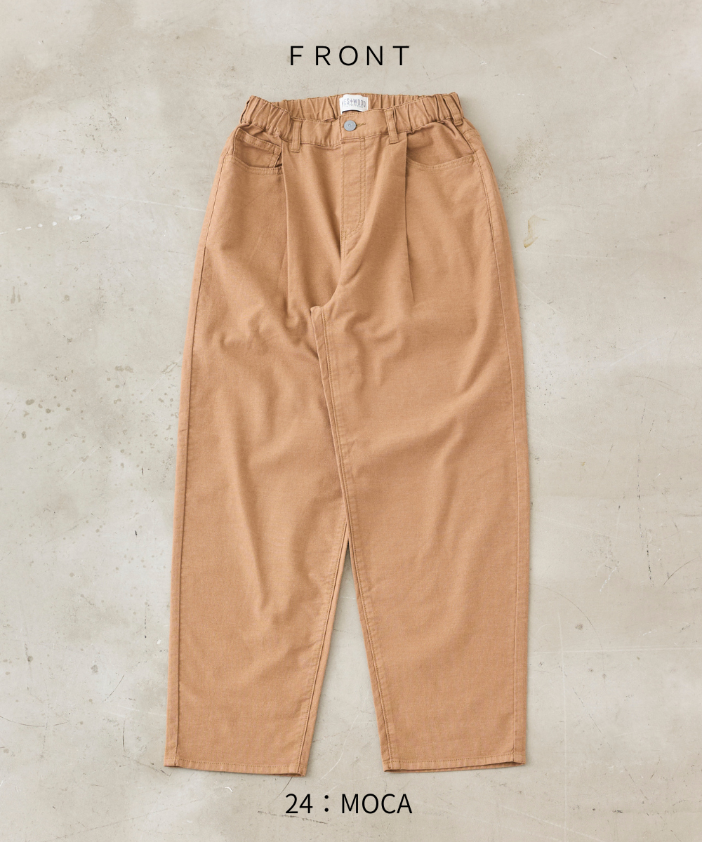 - ファスナー開きなし/ウエストゴム/前ポケット2個/後ポケット2個/前タックあり